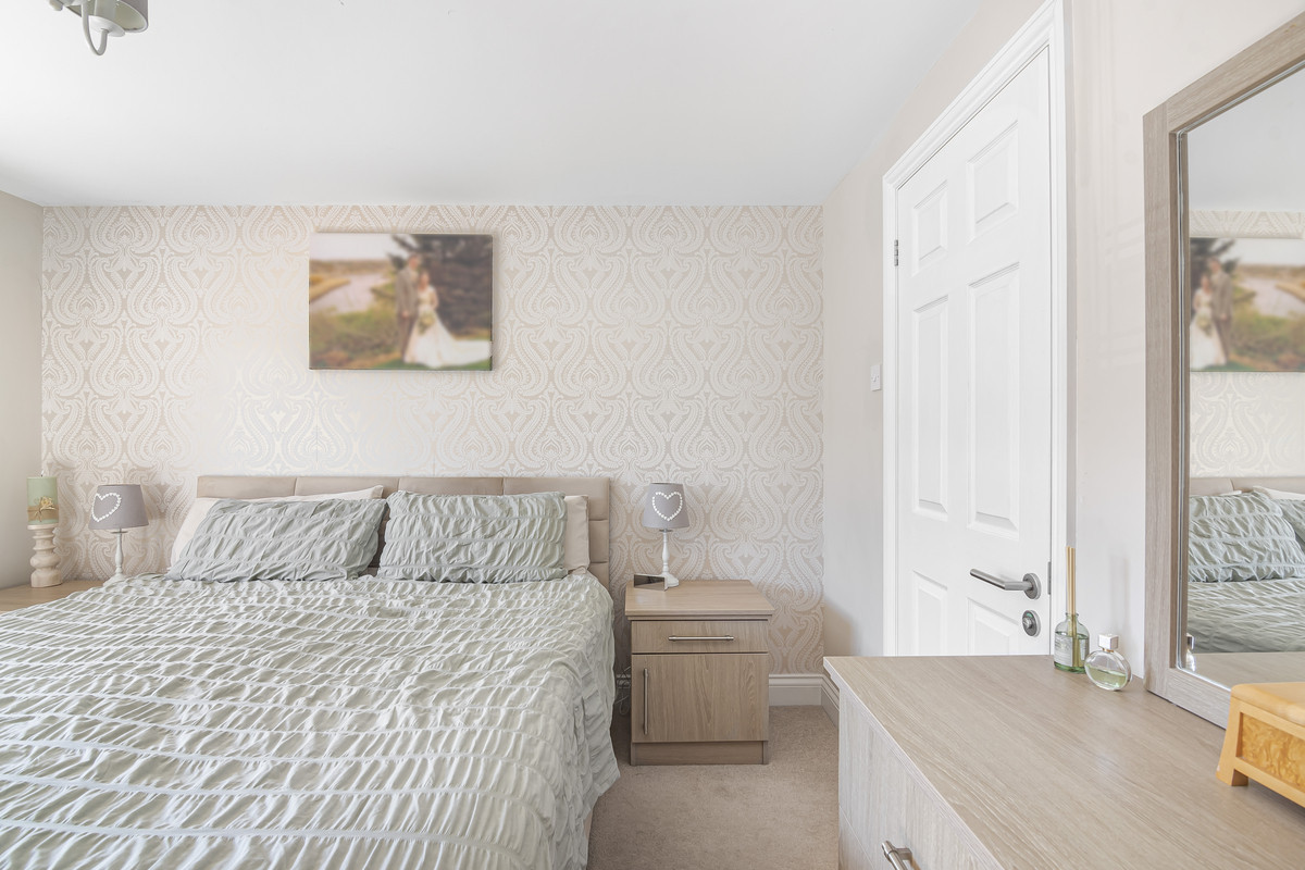 Upstairs, each bedroom offers a comfortable and peaceful retreat. The master bedroom benefits from its own en-suite, while a modern family bathroom serves the remaining bedrooms. The layout is ideal for growing families, ensuring everyone has their own space while maintaining a cosy and connected feel.