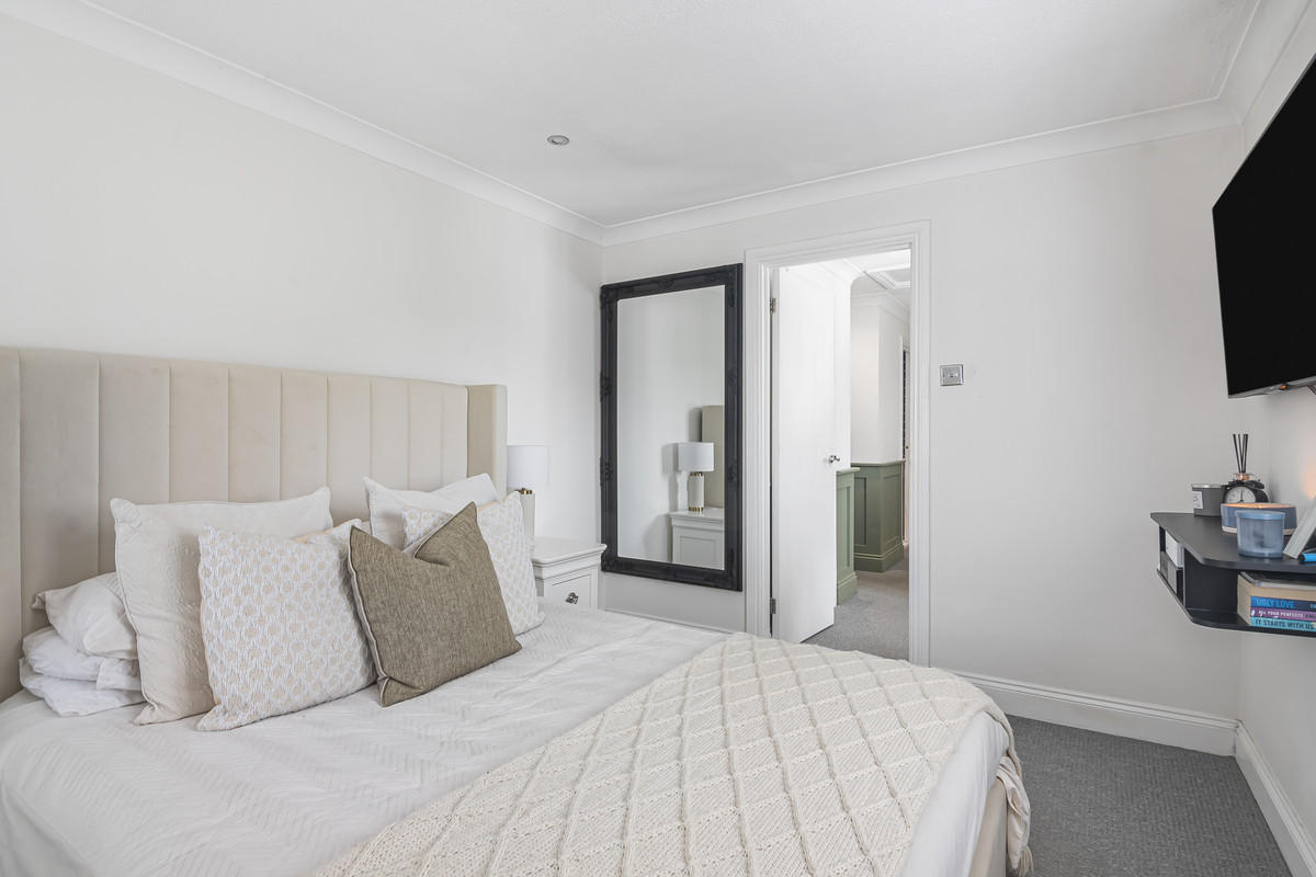 Both bedrooms are generous doubles, each offering a calm and restful ambiance with neutral décor and quality flooring. The stylish bathroom features contemporary tiling and high-end fittings, adding to the overall sense of sophistication and comfort found throughout the property.