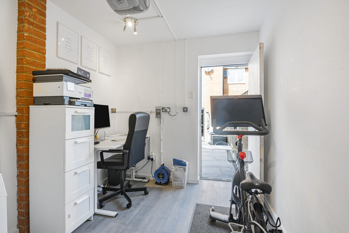 In addition to the main living areas, the property features a garage that has been partially converted into a dedicated study space. This offers a practical solution for those who work from home or require a quiet area for reading, studying, or hobbies, without sacrificing storage or utility space.